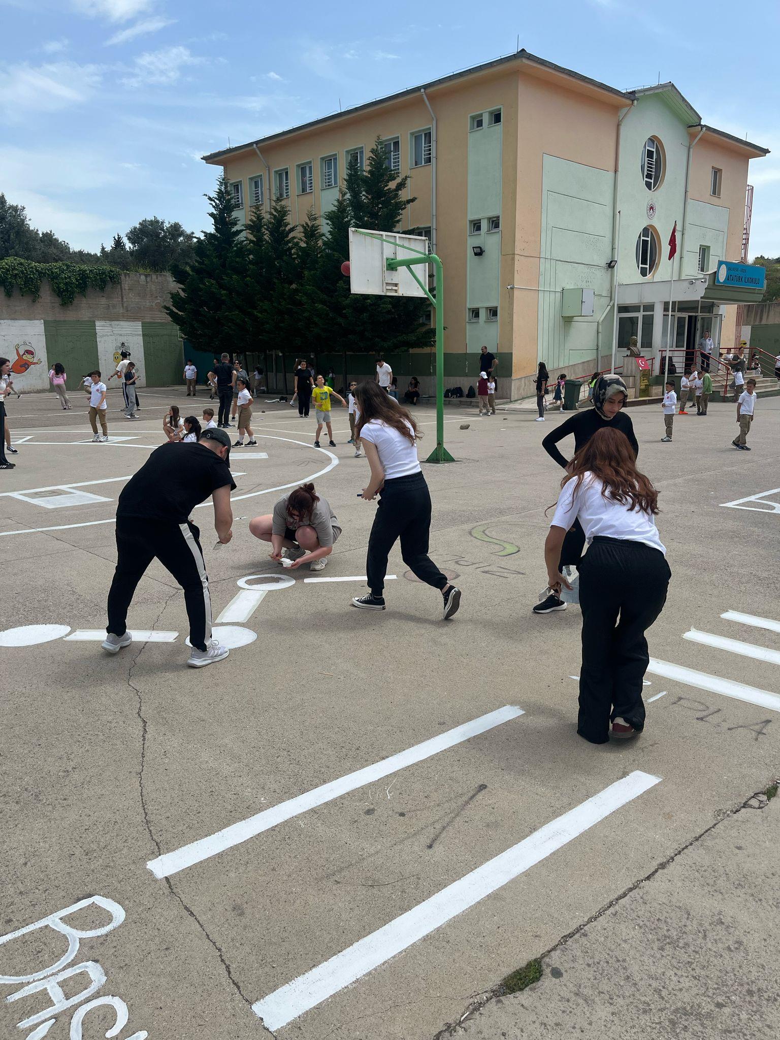 The first project of “There is Life in the Garden” started in Erdek Atatürk Primary School with the cooperation of our faculty’s Physical Education and Sports Teaching Department and Erdek District National Education Directorate. Physical Education and Sports Teaching 4th grade students drew many traditional children’s games such as hopscotch, handkerchief grabber, corner grabber, butter seller, honey seller in the garden of Atatürk Primary School and played the games with the children. The teachers of the future touched the little hearts that will build the future. With this meaningful project, we aimed to both keep our cultural heritage alive and increase the physical activity levels of children. Our project will continue to be carried out every week in 3 different schools in the region.