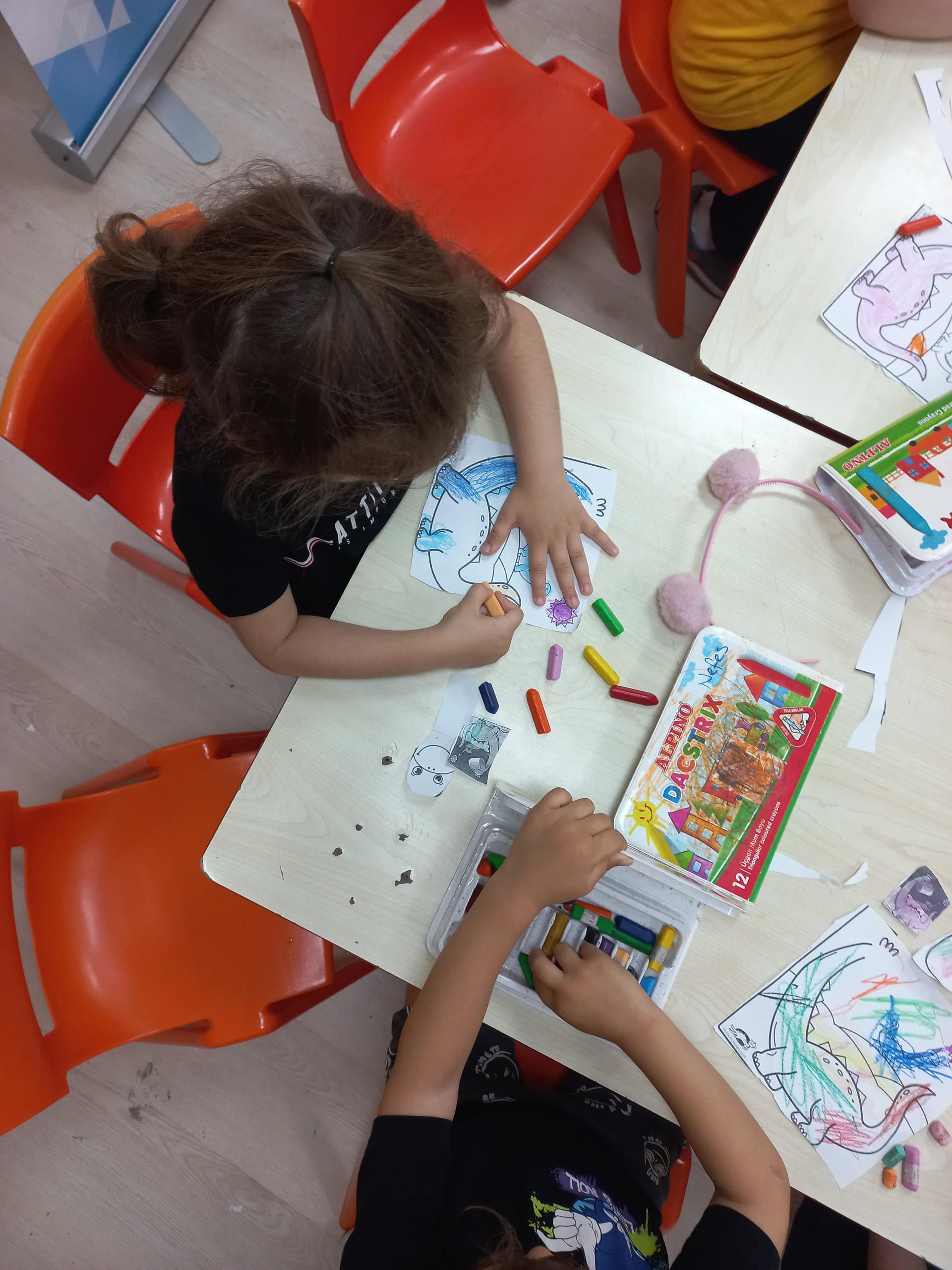 Etkinlikte çocuklara dinozorlarla ilgili eğitici bir video izletildi. Ardından dinozor figürlerini kesip yapıştırma ve boyama çalışmalarıyla hem el becerileri geliştirildi hem de öğrenme pekiştirildi. Dinozor temalı neşeli çocuk şarkıları dinletildikten sonra “Şaşkın Lili” adlı hikaye kitabı okundu ve çocuklara kitap hakkında sorular sorularak etkileşim sağlandı.